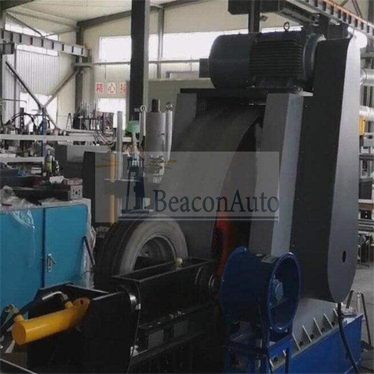 主機采用焊接結(jié)構(gòu)設(shè)計制造,水平加載設(shè)計,大轉(zhuǎn)鼓采用國際標(biāo)準(zhǔn)設(shè)計,設(shè)計直徑1707.6mm,盡量逼真模擬路面狀態(tài),勵磁調(diào)速電機驅(qū)動轉(zhuǎn)鼓實現(xiàn)無級調(diào)速,實現(xiàn)不同行駛車速的試驗,加載支架采用低阻尼直線元件傳動、伺服電機驅(qū)動閉環(huán)控制,負荷傳感器完成對施加載荷的測量,從而實現(xiàn)疲勞試驗載荷的閉環(huán)控制,以及疲勞破壞的緊急停車功能。