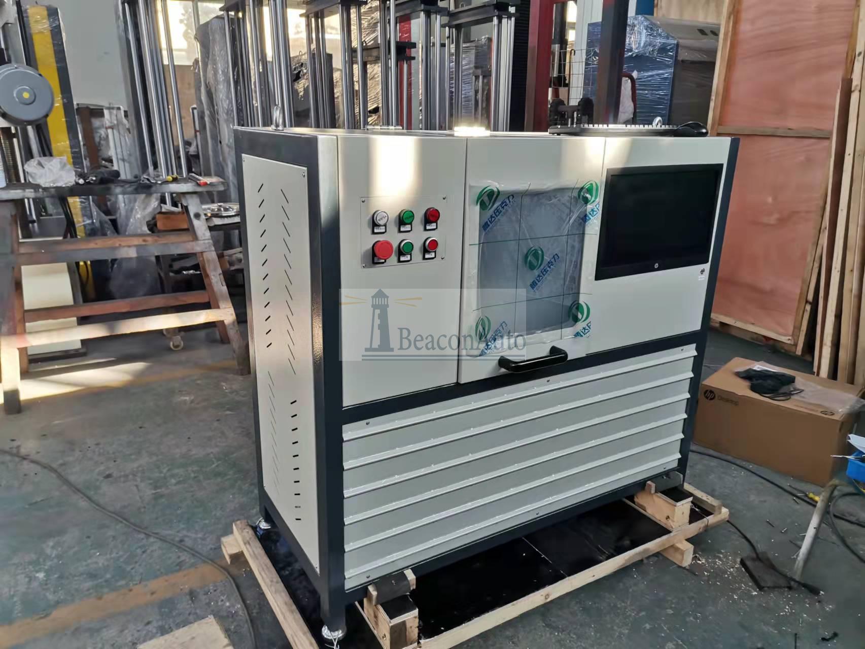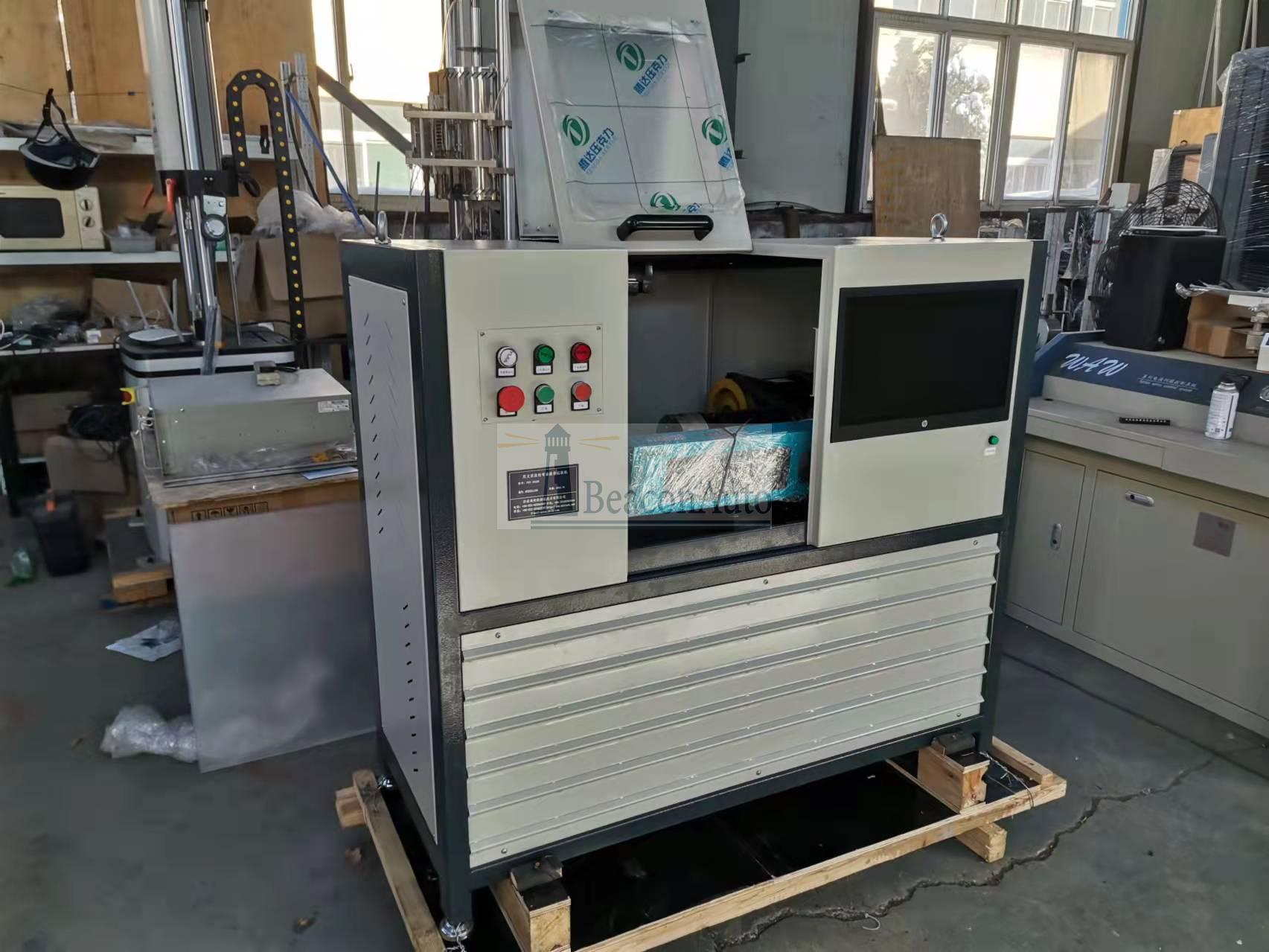 9. 配有觸摸屏操作及顯示面板用于完成所有控制參數(shù)的設(shè)置、所有測量數(shù)據(jù)的顯示及所有的試驗操作;配有與計算機通訊的網(wǎng)絡(luò)接口,當(dāng)選配計算機時,可實現(xiàn)計算機對單臺設(shè)備的測控或?qū)Χ嗯_設(shè)備的組網(wǎng)測控;試驗周次可以任意設(shè)定,達到設(shè)定值可自動停機并具有掉電保護功能。